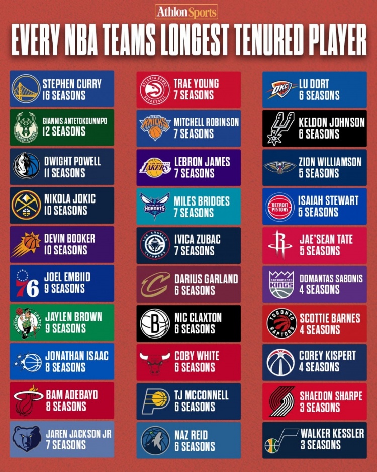 库里16季领跑!每队目前效力时长最久的球员都是谁 ​​​